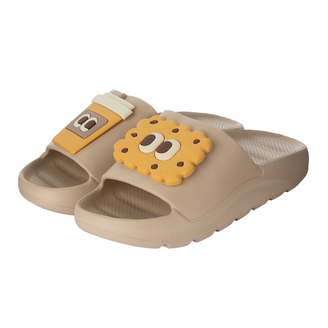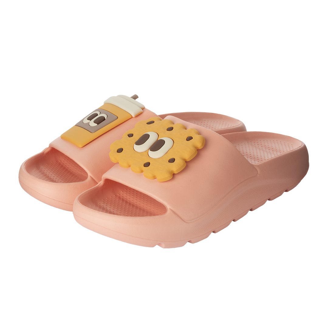 دمپایی زنانه مدل آیس پک با طراحی فانتزی (لیوان نوشیدنی و بیسکوییت)، کفی نرم و جنس مقاوم EVA، ترکیبی از راحتی و ظاهر شاد برای استفاده روزمره است.